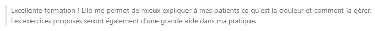 Je recommanderai virement cette formation à tous ceux qui travaillent avec des gens qui ont mal, même en dehors du sport.