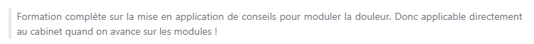 Certains formations vont plus loin sur le fonctionnement de la douleur, mais ne tiennent pas compte des spécificités des sportifs.