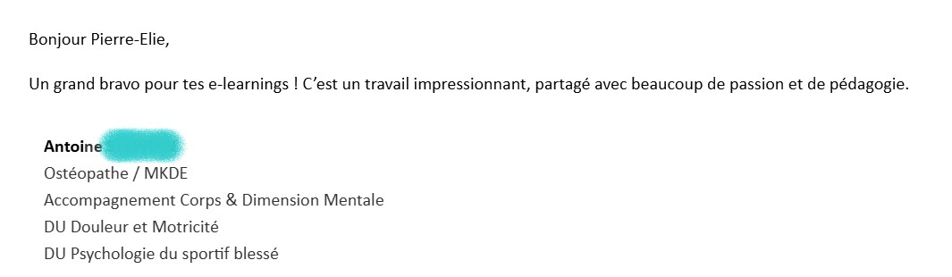 Si vous êtes ostéopathe : une prise en charge a été validée par le FIFL (à hauteur de 450€ environ, l'enveloppe maximale pour les e-learning).